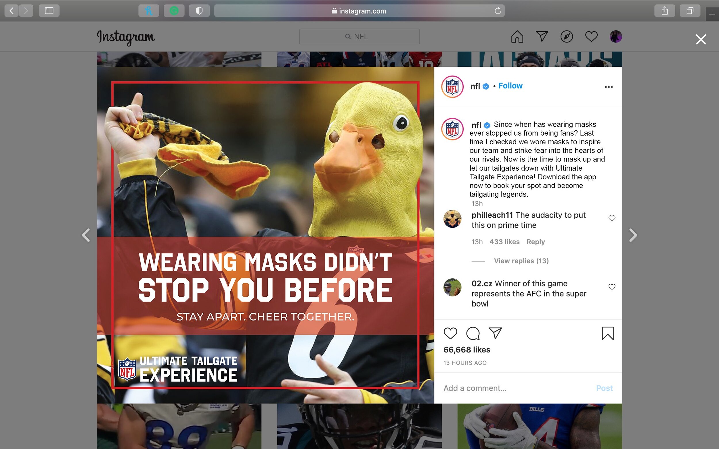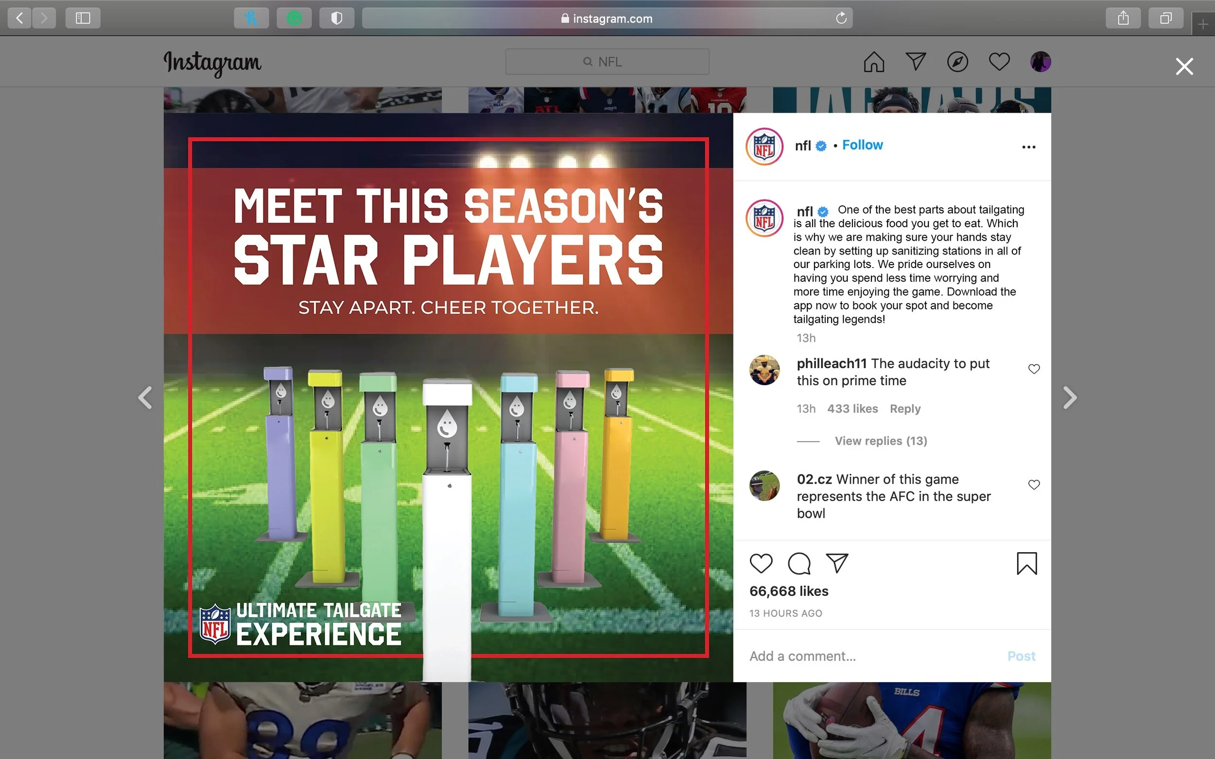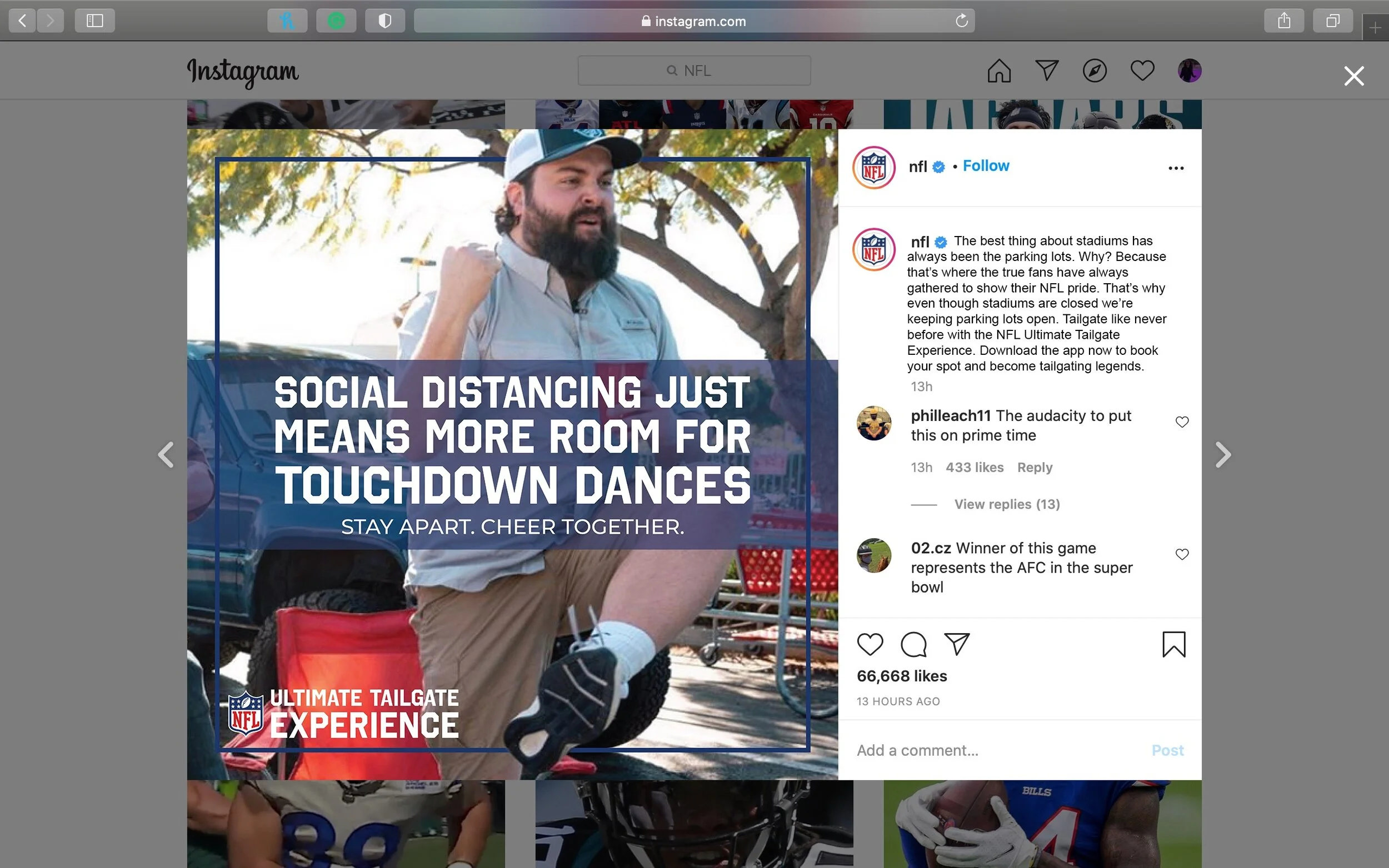 With the NFL season about to start and the Covid-19 pandemic still in full effect it’s unlikely that fans will be allowed inside stadiums. To keep the NFL fandom happy we turned to a tradition that NFL fans have been doing for decades, Tailgating! We created a Covid-19 safe way to tailgate and an app that allows people to purchase parking spots instead of stadium seating. We then created a campaign using social media and OOH to promote downloading the app and the experience.